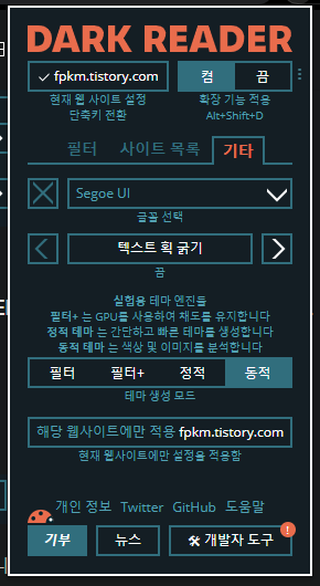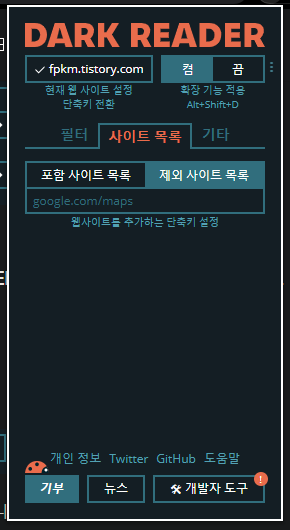 - 제외 사이트 : 다크리더 적용 X 사이트
