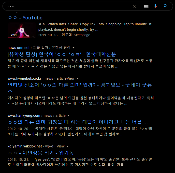 다크리더(대비+50) 상태에서 구글에 "ㅇㅇ" 을 검색한 화면입니다.