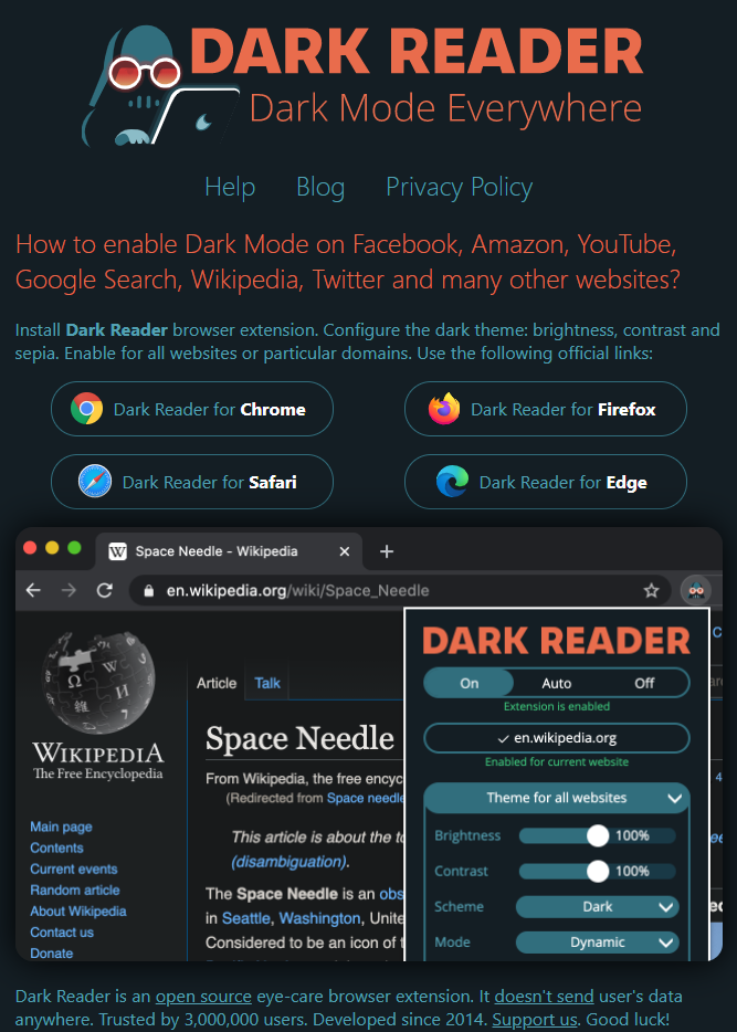 모든 웹사이트에 다크 모드를 적용합니다. 밤이나 일상적인 웹 브라우징을 할 때 어두운 테마를 사용하여 눈을 보호하십시오.