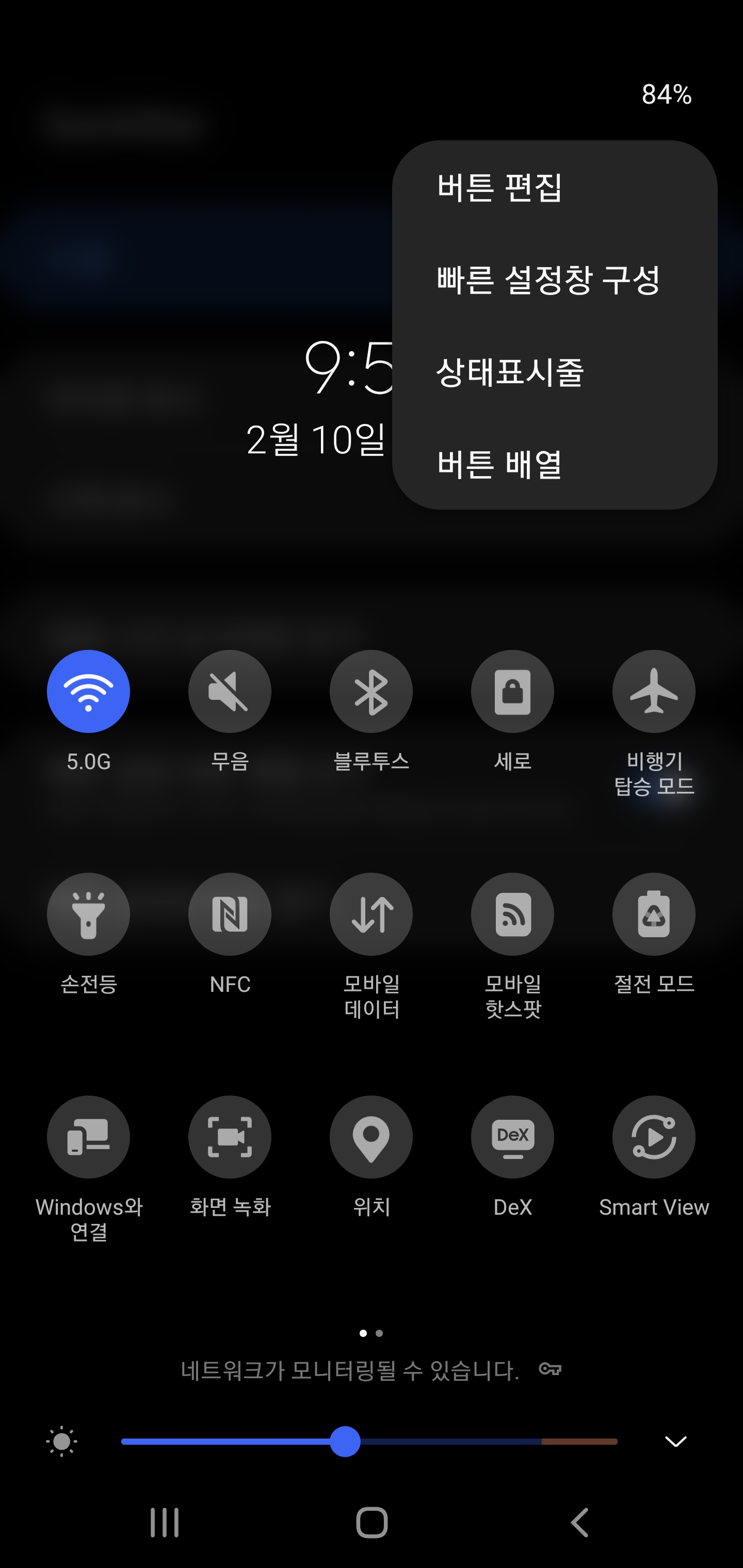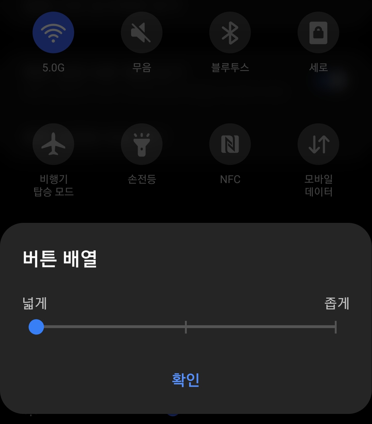 버튼 배열이 생기는데 이를 이용해 빠른 설정 창의 배열을 조절해 보다 많은 아이콘을 표시할 수 있습니다.
