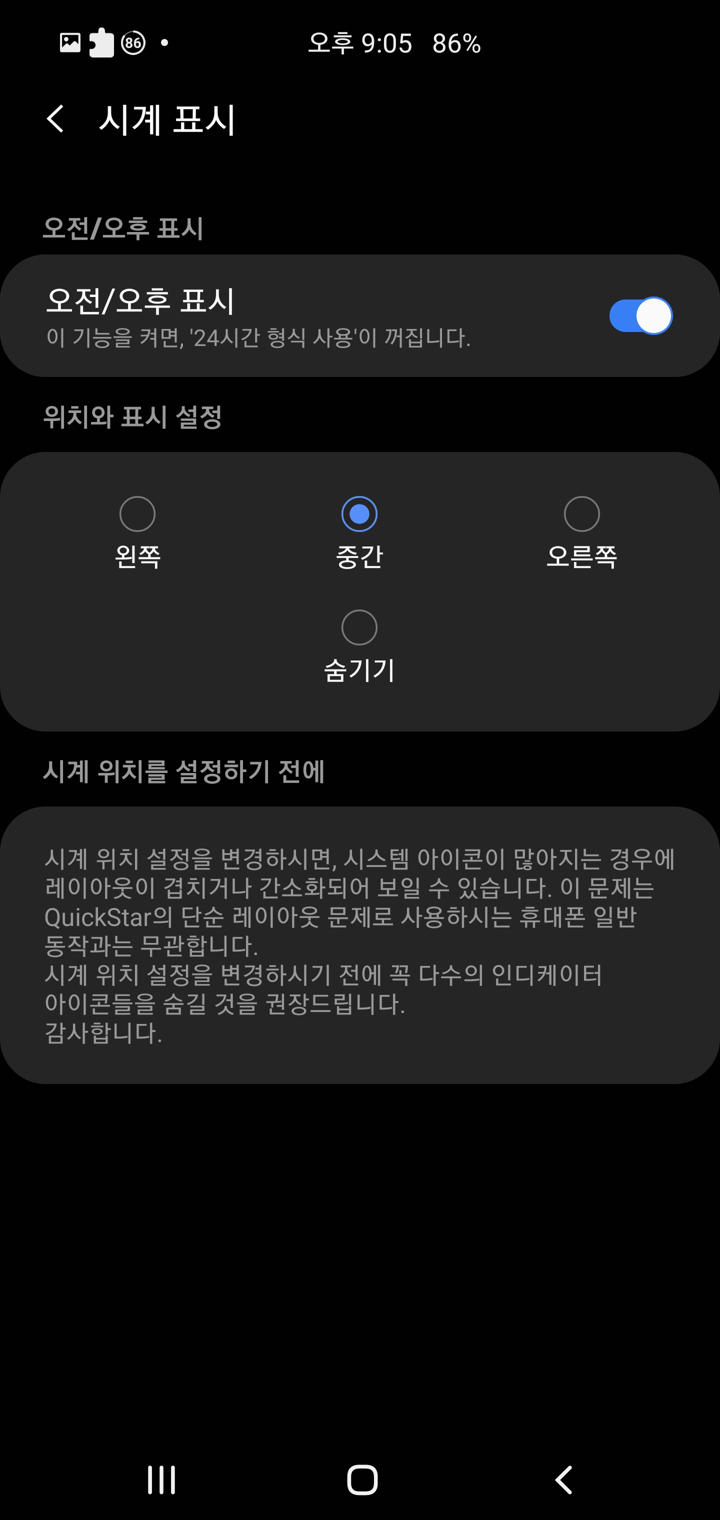 시계 표시는 말그대로 상단바에 표시되는 시간을