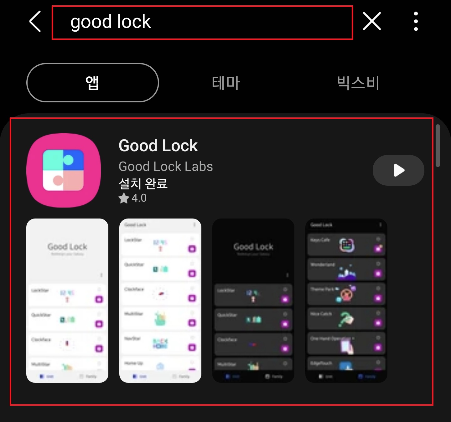 2. "Good Lock" 을 검색해서 설치