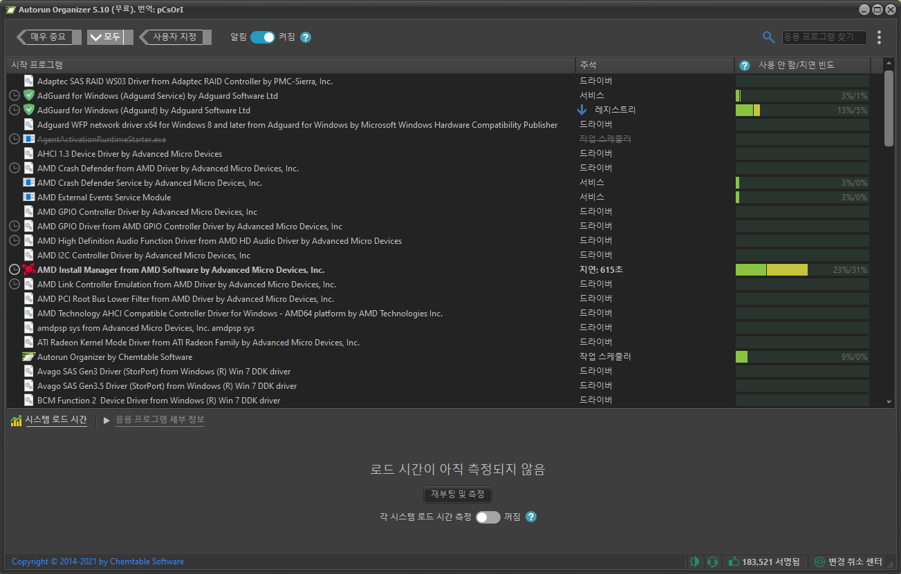 [재부팅 및 측정] : 재부팅하여 부팅 시간을 측정, 시작 프로그램별로 로드시간도 측정