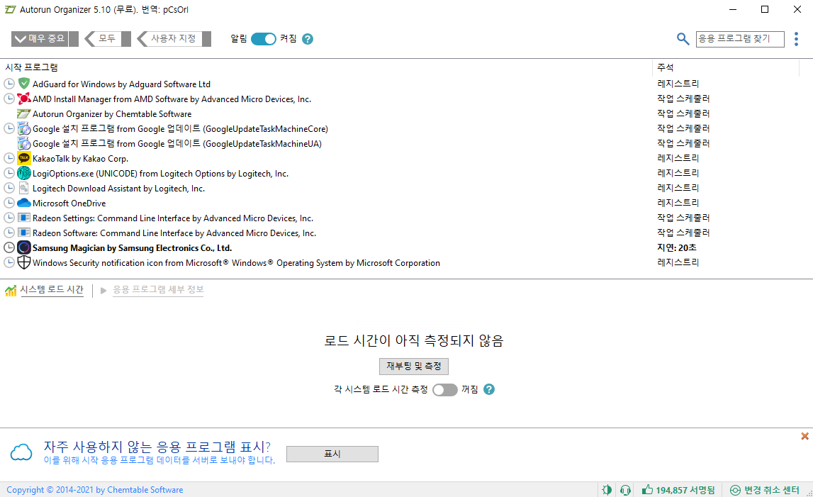 설치 :www.majorgeeks.com/files/details/autorun_organizer.html