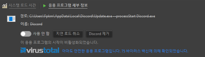 부팅시 로드를 희망하지 않는 파일일 경우 해당항목을 [우측 마우스 클릭]하여 [제거(W)]를