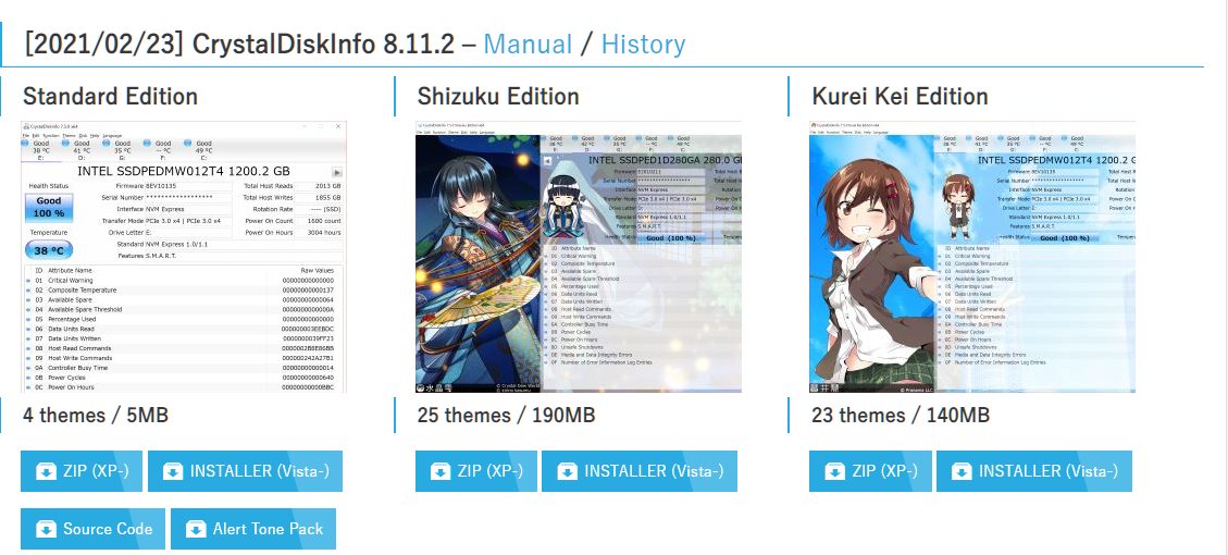 Donation Please make the amount of each contribution 1,000 JPYen(/10 USD) or more if possible. Your contributions will be deeply appreciated. [2021/02/23] CrystalDiskInfo 8.11.2 – Manual / History Standard Edition 4 themes / 5MB ZIP (XP-) INSTALLER (Vist