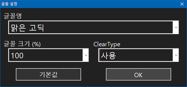 글꼴과 크기, 클리어 타입 설정도 가능합니다.