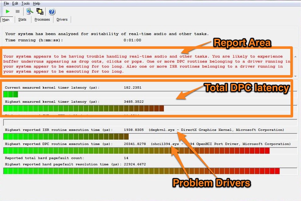 LatencyMon Latest version: LatencyMon v 7.00 LatencyMon checks if a system running Windows is suitable for processing real-time audio and other tasks. LatencyMon analyzes the possible causes of buffer underruns by measuring kernel timer latencies and re