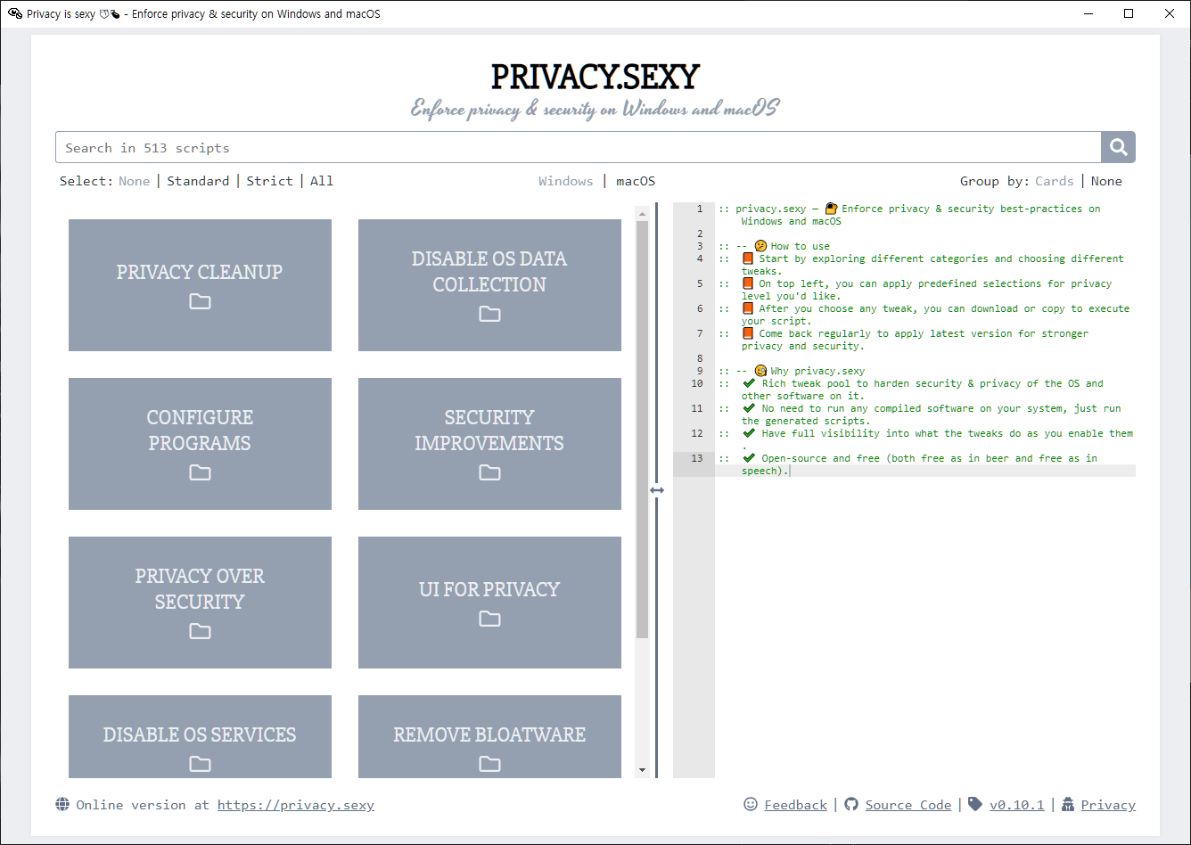 공식 홈페이지 : privacy.sexy/