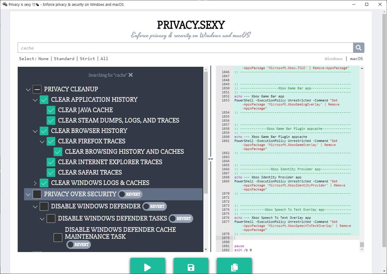 privacy.sexy는 컴퓨터의 보안 및 개인 정보 보호를 강화하기 위해 다양한 시스템 조정을 제공하는 프로그램입니다.