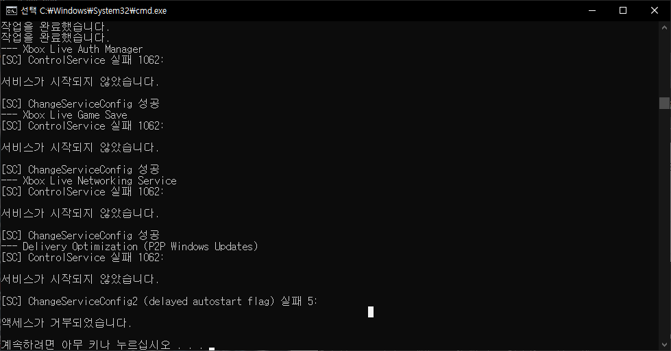 원하는 옵션을 선택한 후 저장(.bat)합니다. 우측 버튼에 카피를 하셔도 상관없습니다. (관리자 권한으로 cmd에 복사 붙여 넣기 )