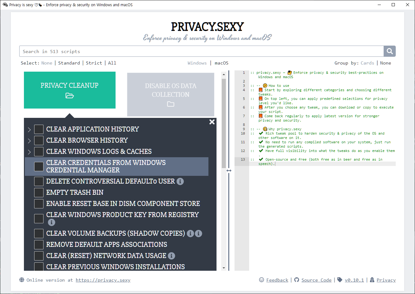 다운로드 : github.com/undergroundwires/privacy.sexy/releases/tag/0.10.1.