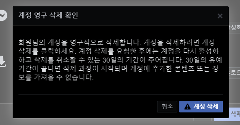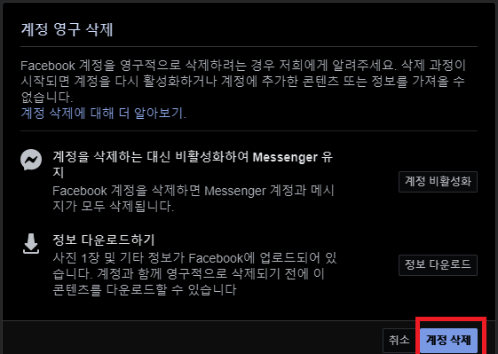 페이스북 탈퇴하는 방법( 계정 영구 삭제)