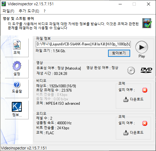 사용해본결과 일반적으로 쓸일은 없으나 파일을 여러개 열어서 확인해봤는데 비교적 최신의 코덱들은