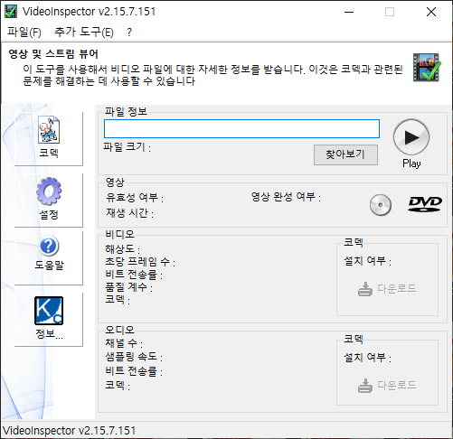 VideoInspector는 최적의 성능을 위해 필요한 코덱 (코더 / 디코더 소프트웨어)을 설치하는 데 도움이 됩니다.