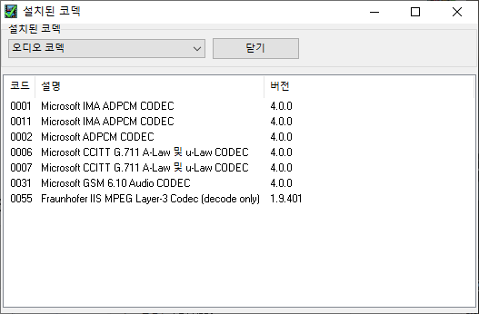 설치된 오디오 및 비디오 코덱을 나열합니다.