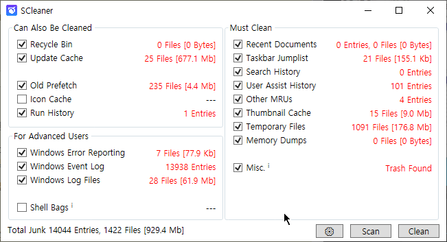 Scleaner 프로그램은 윈도우 기기를 간편하게 청소할 수 있는 포터블 앱입니다.