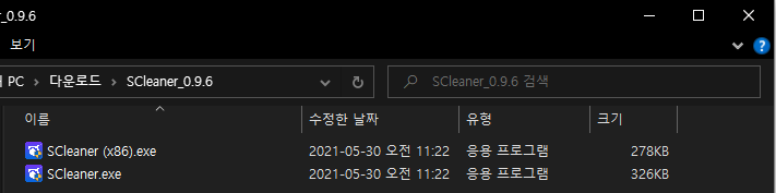 64비트라면 Scleaner.exe / 32비트 OS라면 Scleaner (x86) 으로 실행해줍니다.