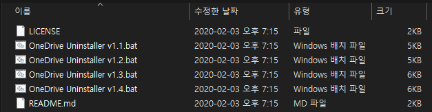 우선 원드라이브 삭제 스크립트를 다운받아서 압축을 풀어주세요.