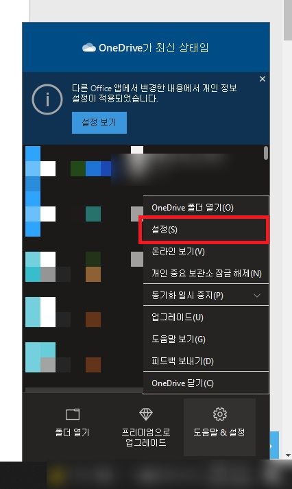 (원드라이브를 깔끔히 삭제안하고는 동기화 중지 오류가 뜨기도 합니다.)
