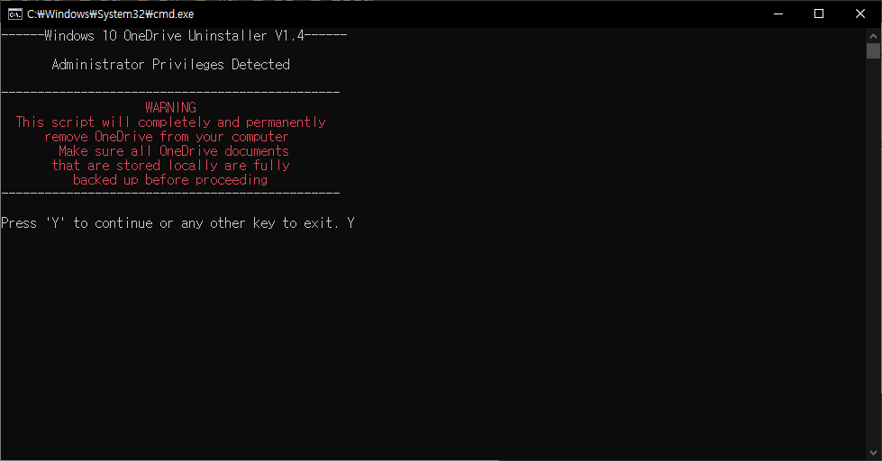 Y를 누르시면 알아서 삭제를 진행합니다.