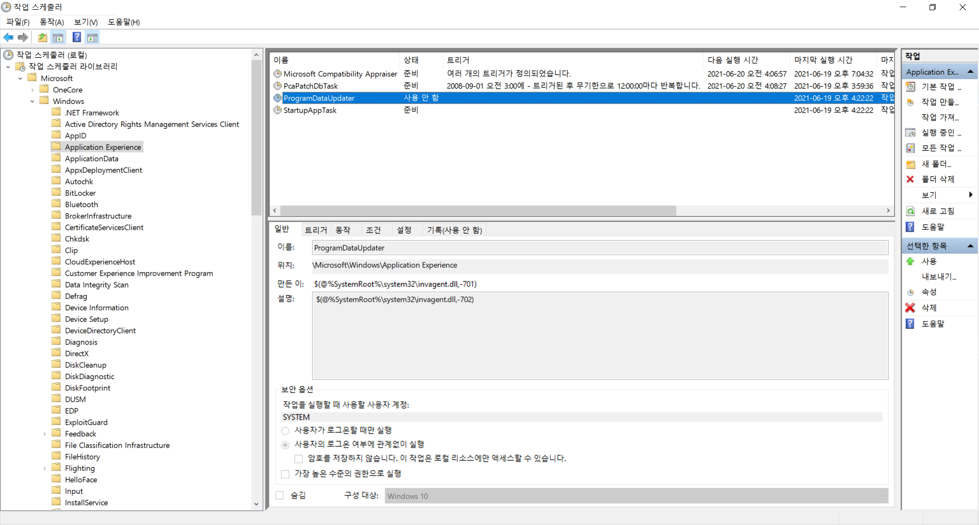 Windows - Application Experience - Program Data Updater : 사용 안 함