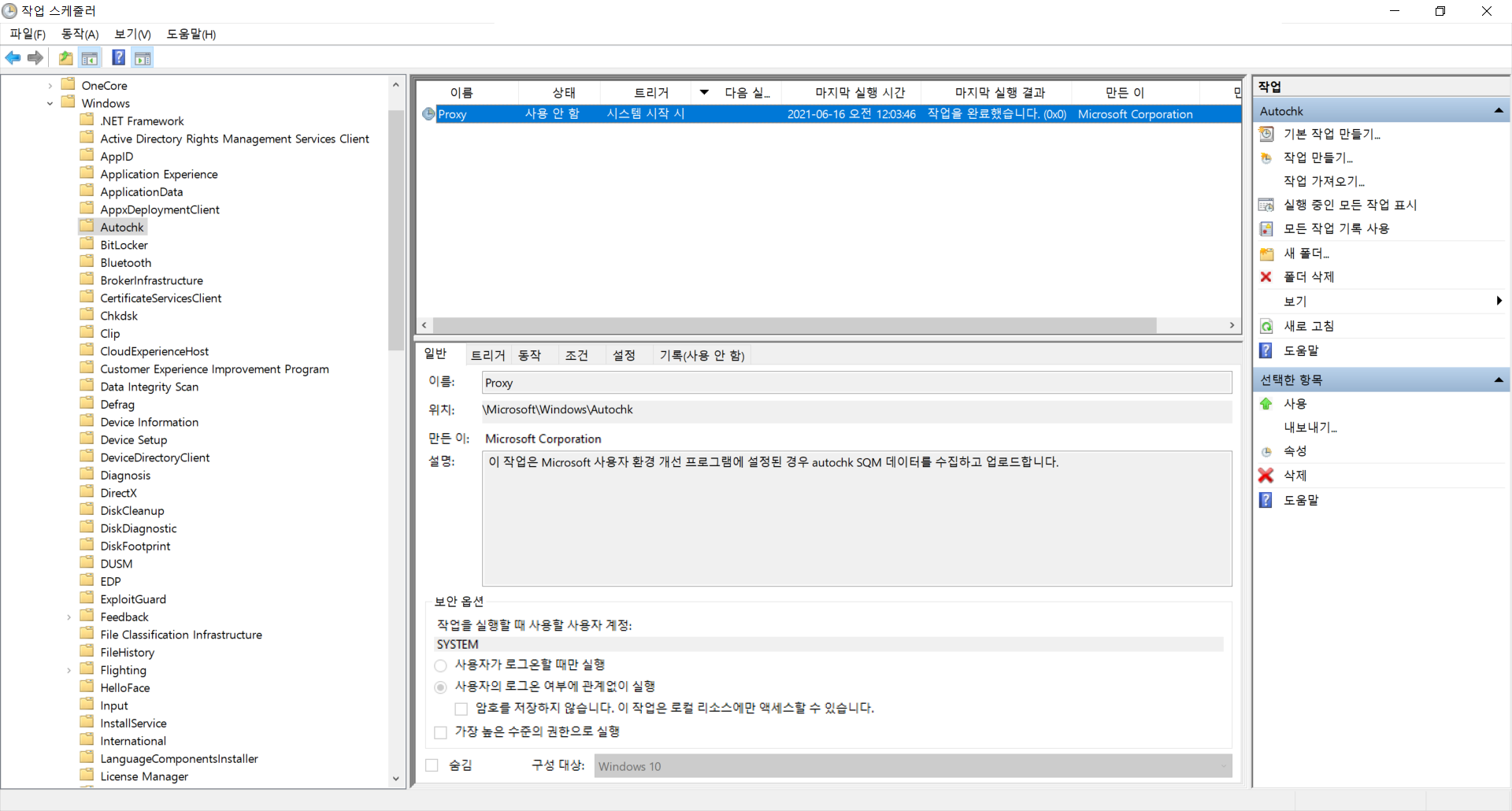 Windows - Autochk - Proxy : 사용 안 함
