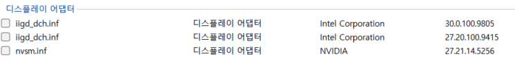 그래픽 드라이버의 경우 이전드라이버,최신드라이버가 설치되어있지만 이전드라이버가 현재 실행중이여서 삭제 불가이거나 할수있다.