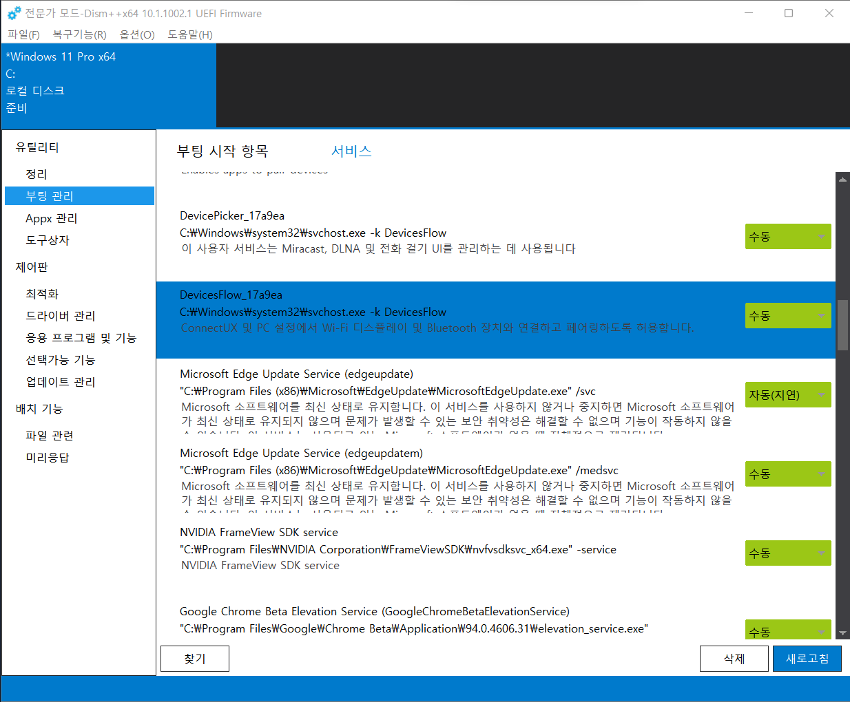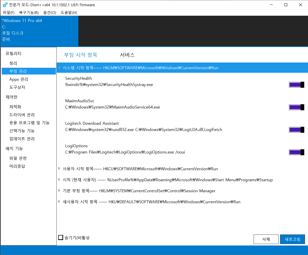 부팅시 실행되는 부팅 시작 항목(시작 프로그램), 서비스를 관리할수있습니다.