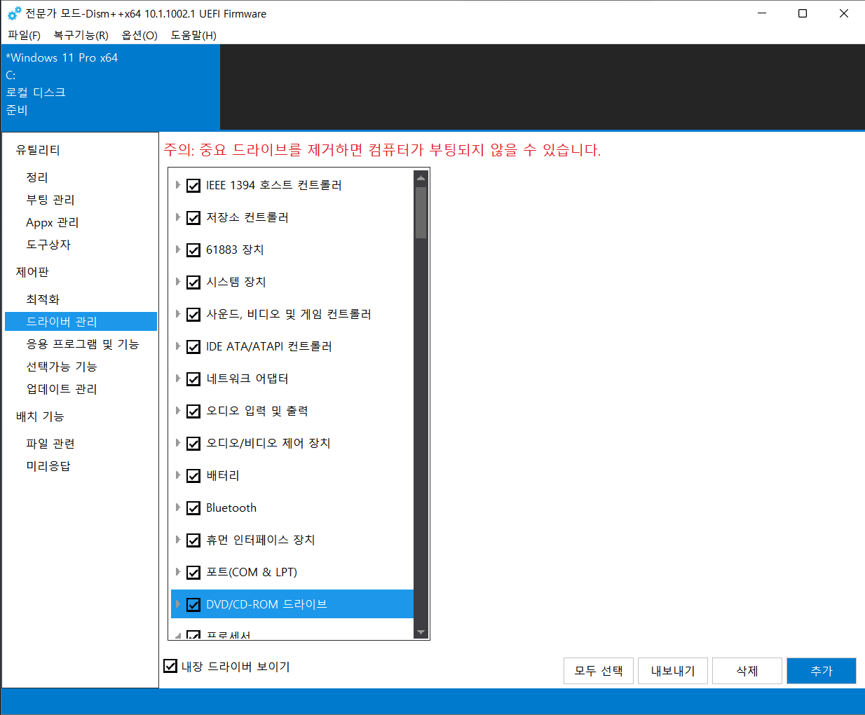 여기선 드라이브를 삭제할수 있긴한데 조금 UI가 불편해서 사용성이 떨어집니다.