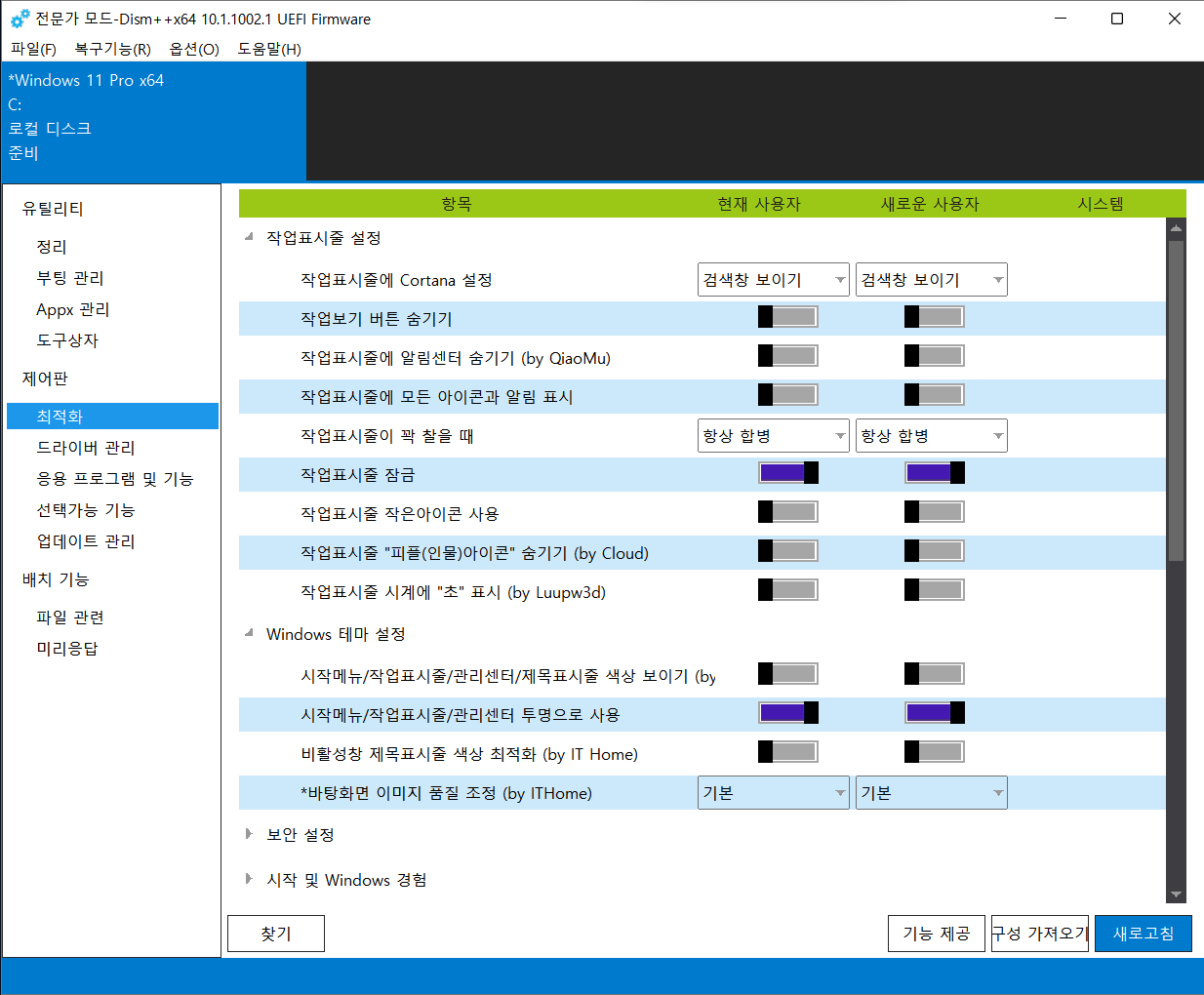 작업 표시줄의 경우 윈도우11은 안되는거같습니다.