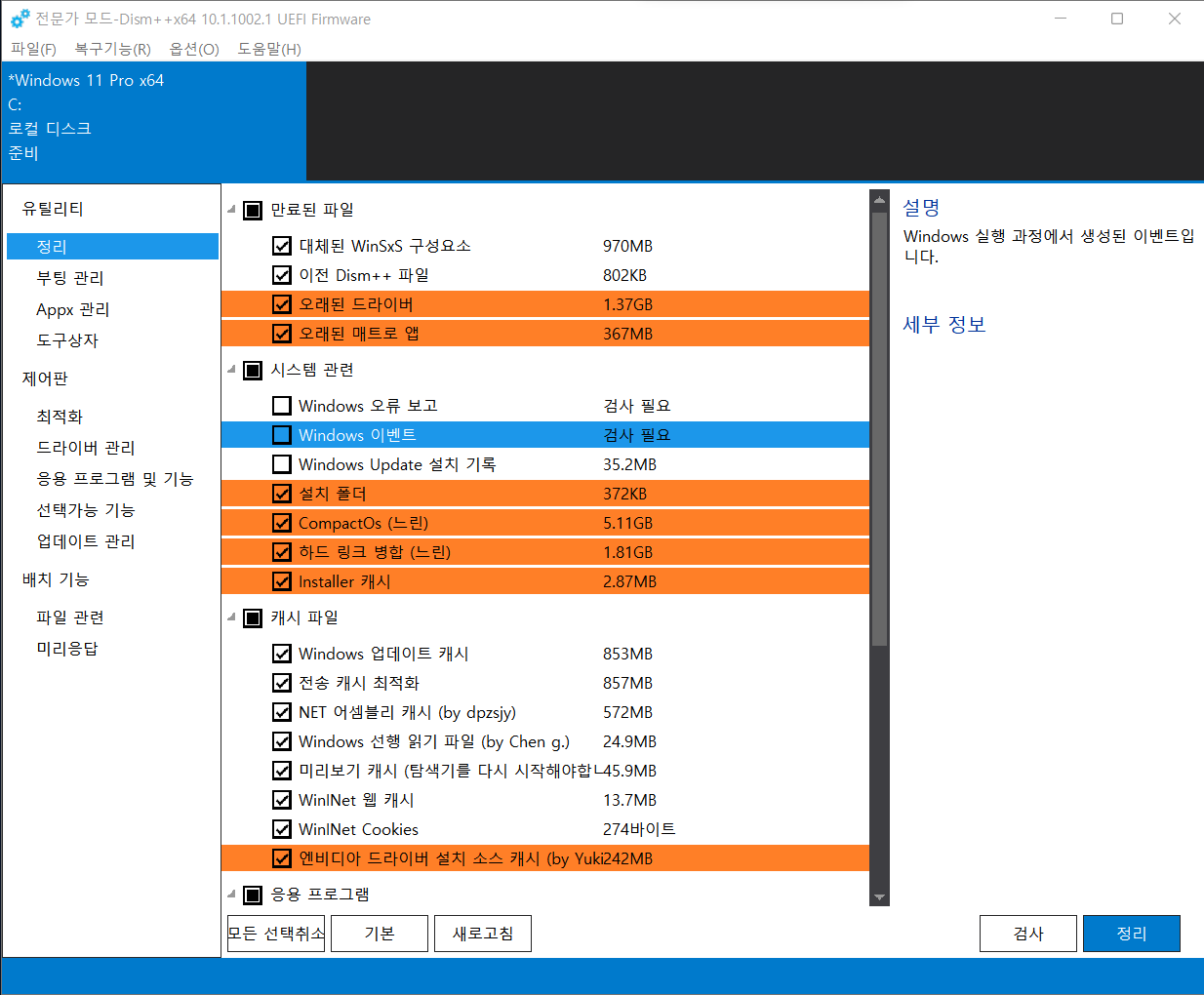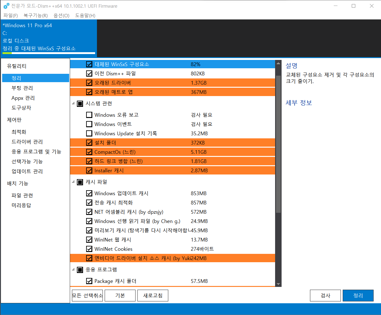 *주확색 박스의 항목들은 대부분 지워도 심한 문제는 발생하지는 않지만 주의해서 선택하자.