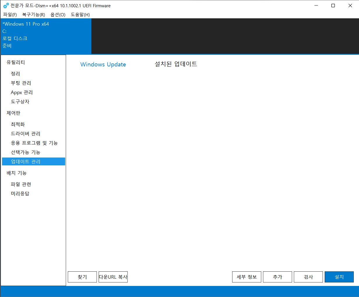 설치된 업데이트 탭에서 설치된 업데이트를 손쉽게 삭제할수있습니다.(윈도우 순정기능에서 삭제보다 편함)