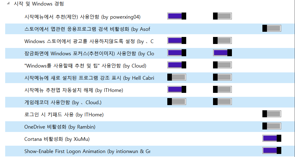 추천 옵션(윈도우11+노트북이라 필요없는 세팅이 많음)