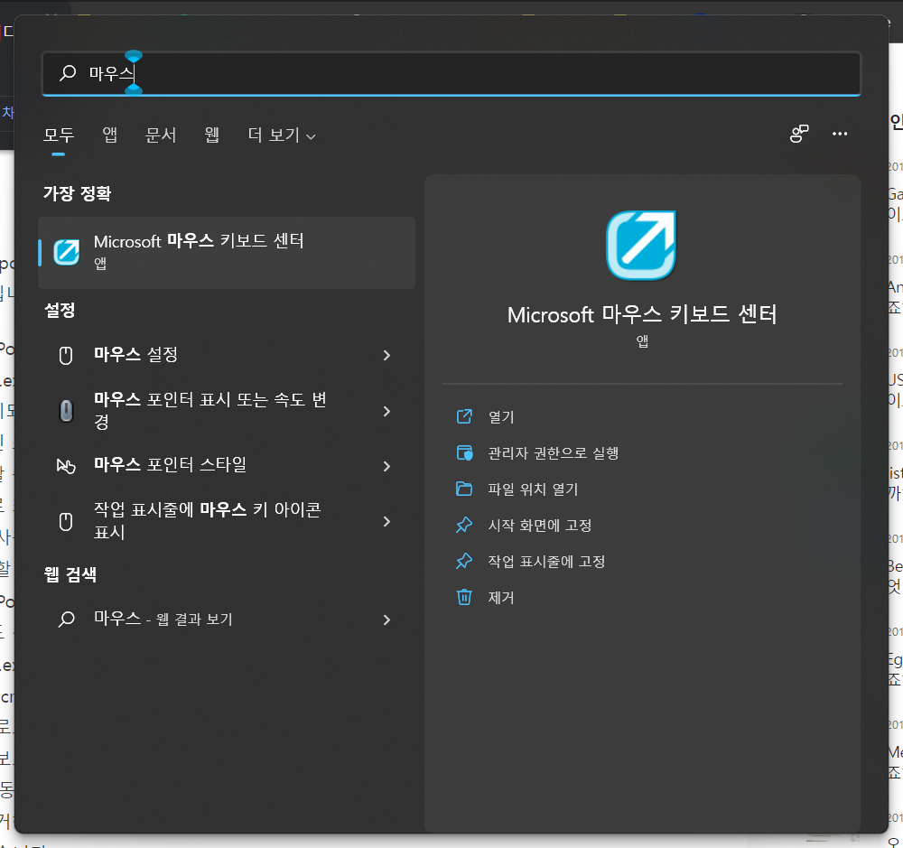 마이크로 소프트에서 제공하는 키보드, 마우스 관련 프로그램.