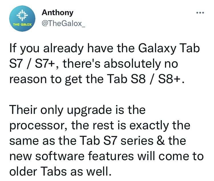 갤럭시 탭 S7/S7+ 유저들은 탭 S8/S8+를 구매할 필요가 없다고 함.