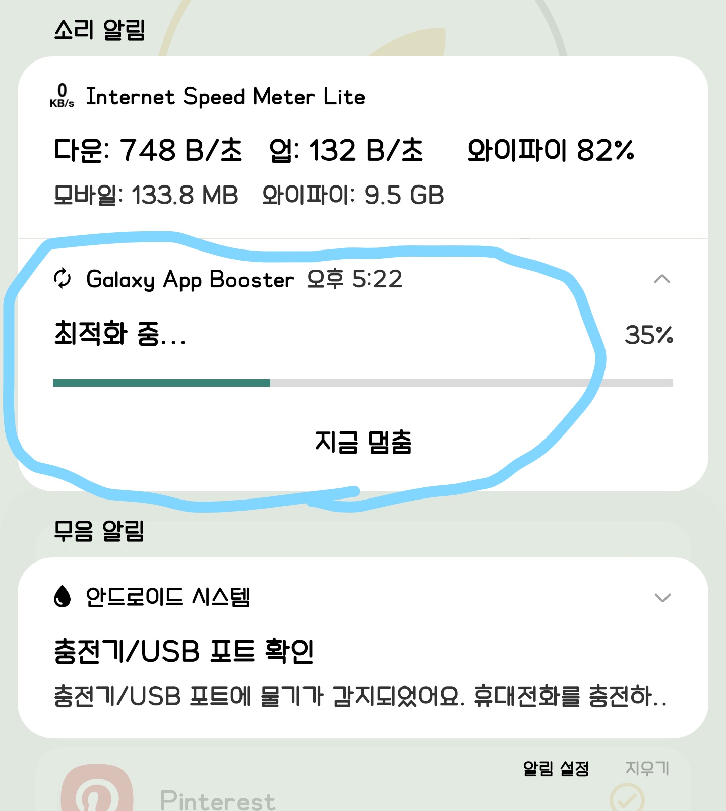 앱 부스터 사용법은 간단한데 그냥 "지금 최적화" 하나만 눌러 주면 된다.
