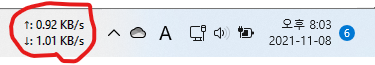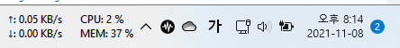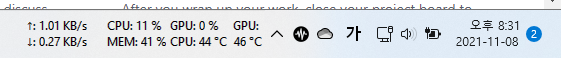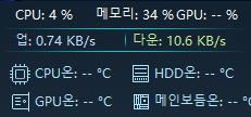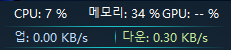 윈도우11에서 업다운 속도 / CPU 메모리 사용량만 작업표시줄로 사용하고 있음(온도 모니터링등등은 너무 길어져서 잘안씀)