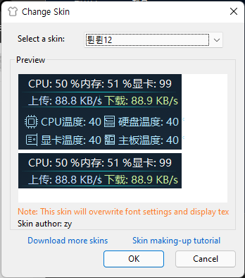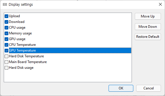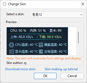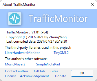 업데이트 내역 : https://github.com/zhongyang219/TrafficMonitor/wiki