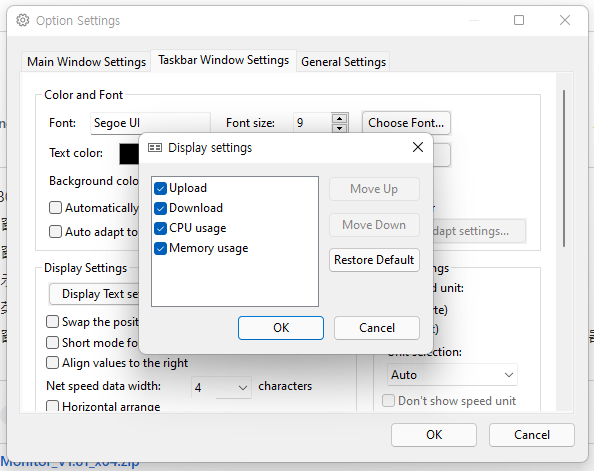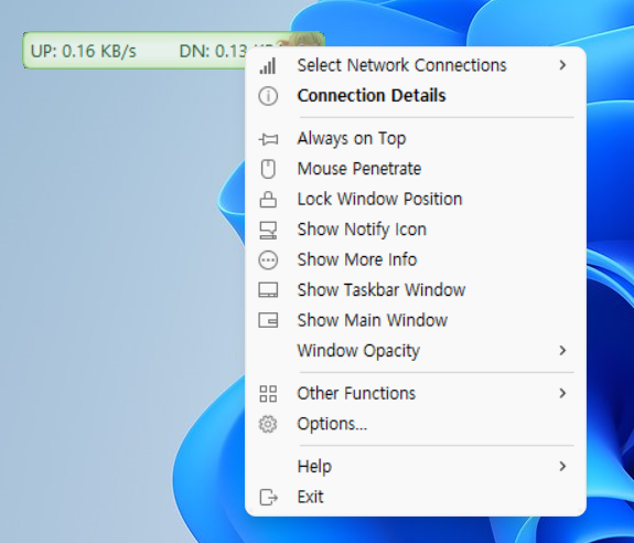현재 네트워크 속도, CPU 및 메모리 사용률을 표시하는 간단한 데스크톱 표시창 및 작업 표시줄 디스플레이 표시이며 윈도우11에서 잘작동하기에 여러모로 좋은 유틸프로그램입니다.