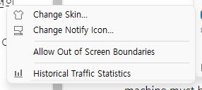 설정은 떠 있는 창에서 마우스 오른쪽 버튼으로 클릭하여 설정할 수 있고 작업 표시줄에 정보 표시기능 또한 지원합니다.
