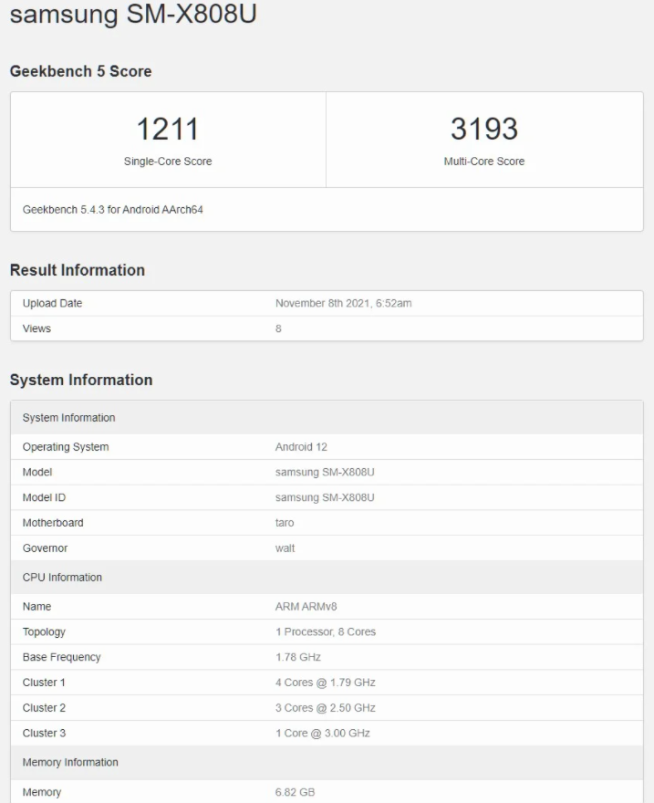 또한 8GB RAM(LPDDR5?) 과 안드로이드12 입니다.
