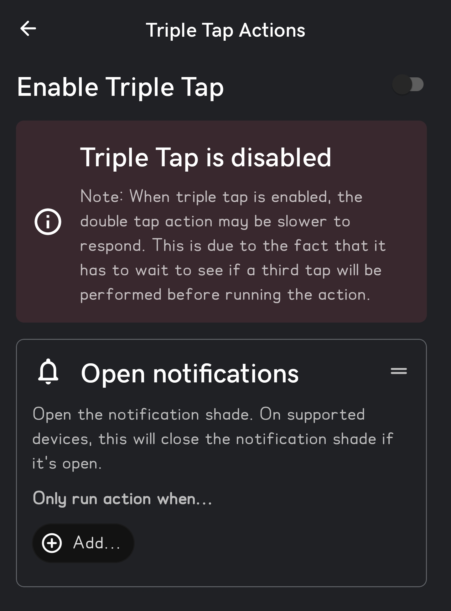 하지만 트리플 액션을 키면 더블탭 반응이 느려질수있다고 한다 (더블탭 - 트리플탭 액션 인식하는거때문인듯)