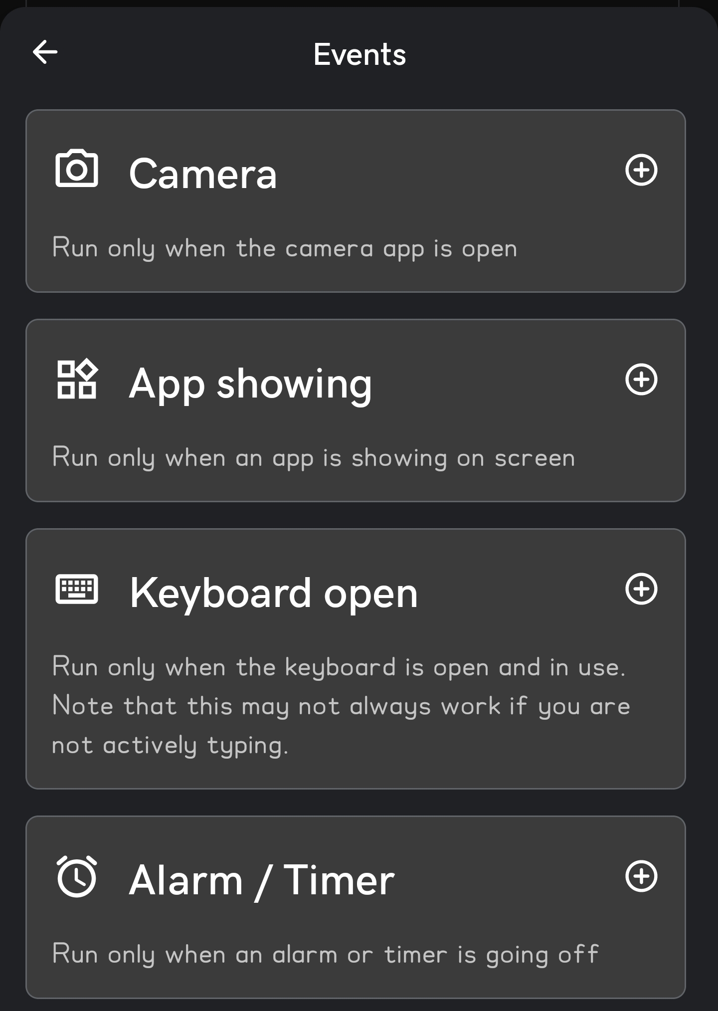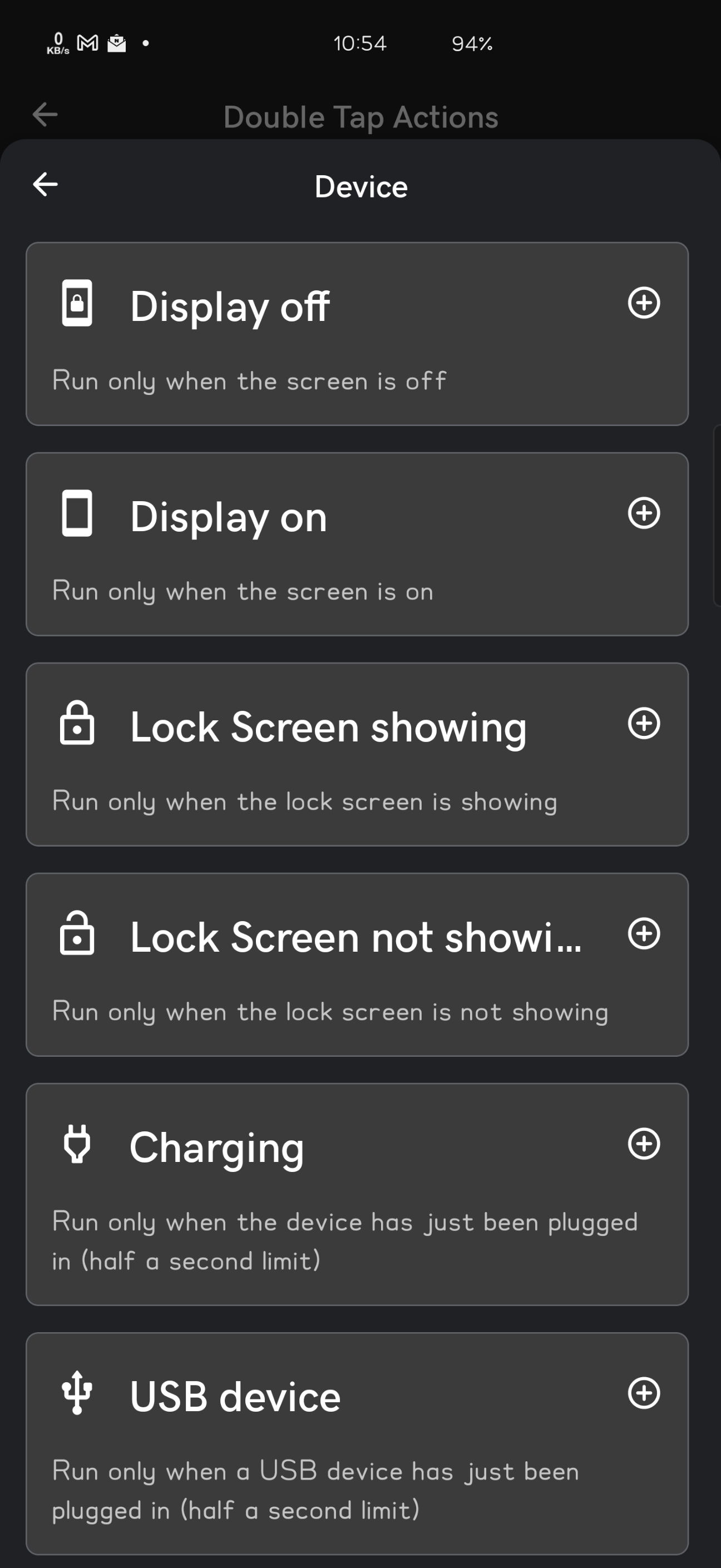 위에서 부터 화면이 켜졌을때, 화면이 꺼졌을때, 잠금 화면 일때, 잠금 화면이 아닐때, 충전중일때, usb 연결중일때 이다.