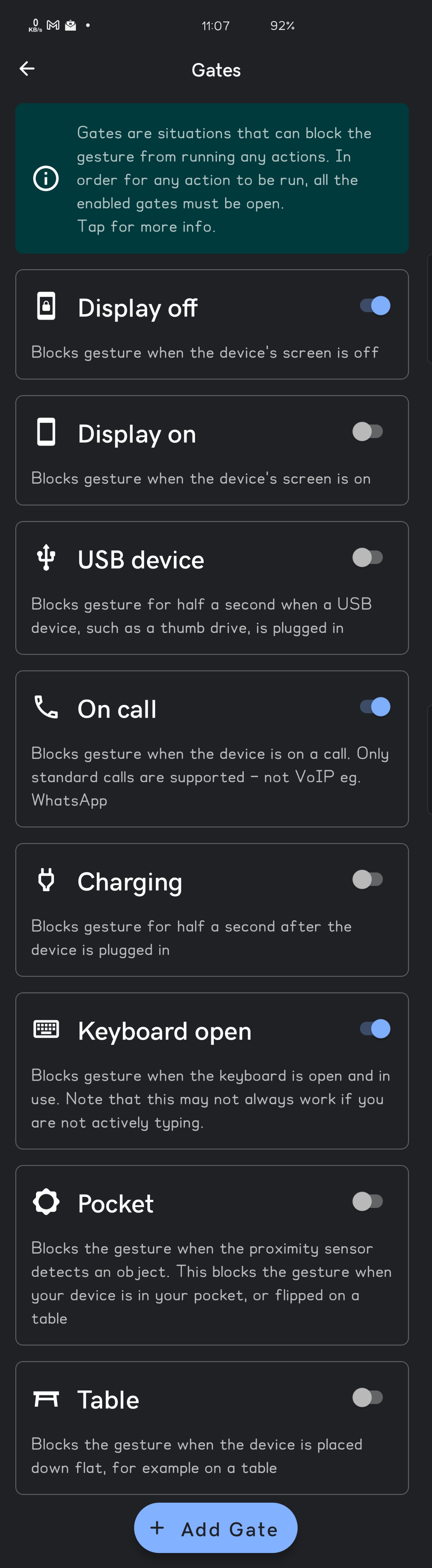 Gates 메뉴에서 언제 사용 안 할지 설정할 수있다.