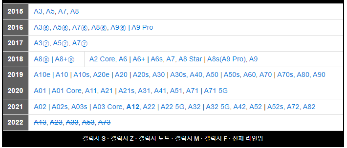 2022년 출시예정 A시리즈중에 가장 하급인 모델입니다.(A12 후속모델)