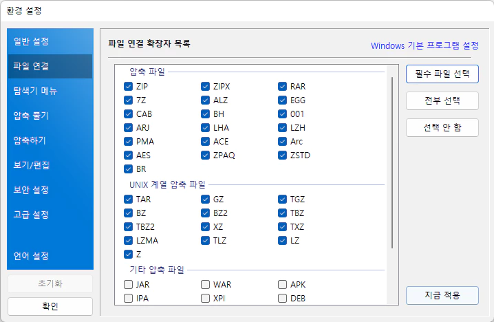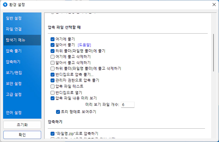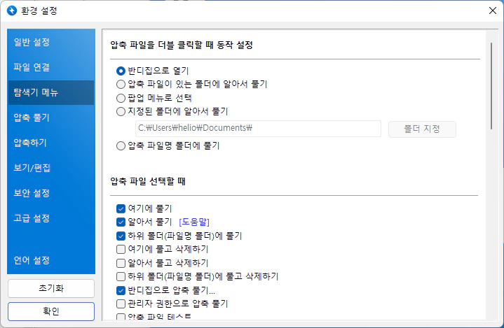 압축 파일을 더블 클릭할때 동작 설정