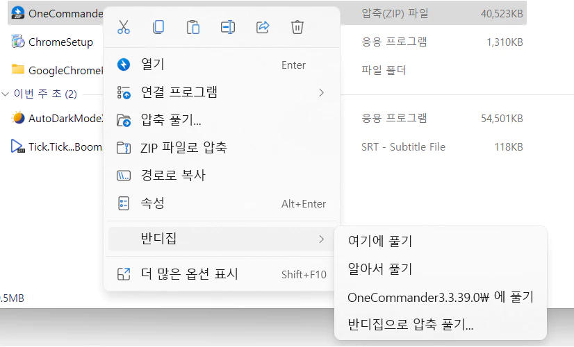 더블클릭 시 열기보다 바로 풀기 해주는게 저는 개인적으로 더 편했습니다.