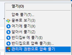 관리자 권한으로 압축 풀기 - 선택