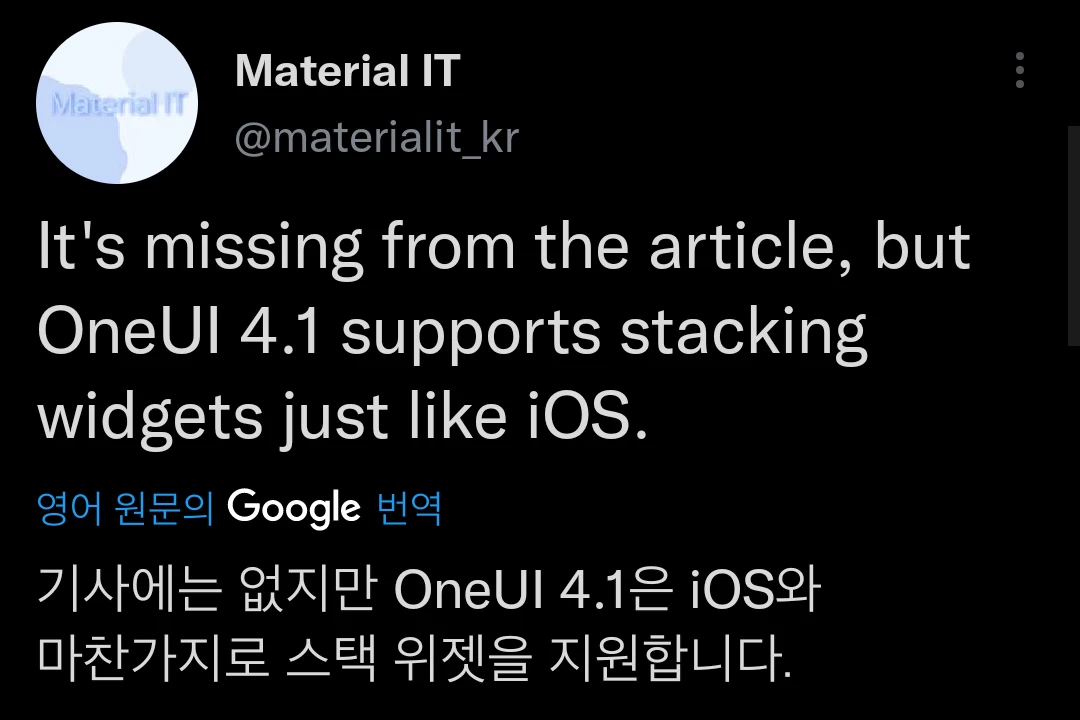 ios와 비슷한 방식의 스택 위젯을 지원(one ui 순정에서)